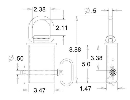 D-Ring, 1/2" Removable D-Ring #B38SP