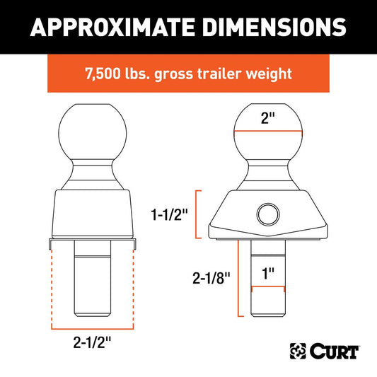 Ball, 2" Trailer Ball 1" x 2-1/8" Shank, 7500lbs #40037