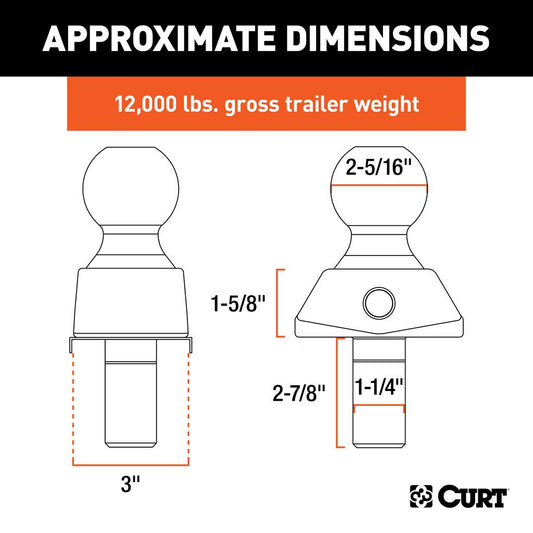 Ball, 2-5/16" Trailer Ball 1" x 2-1/4" Shank, 12,000lb #40039