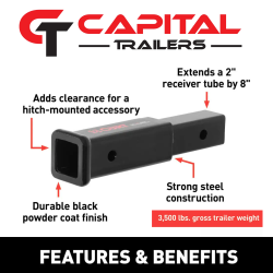 Extension Length: 8" – adds extra clearance for hitch-mounted accessories.