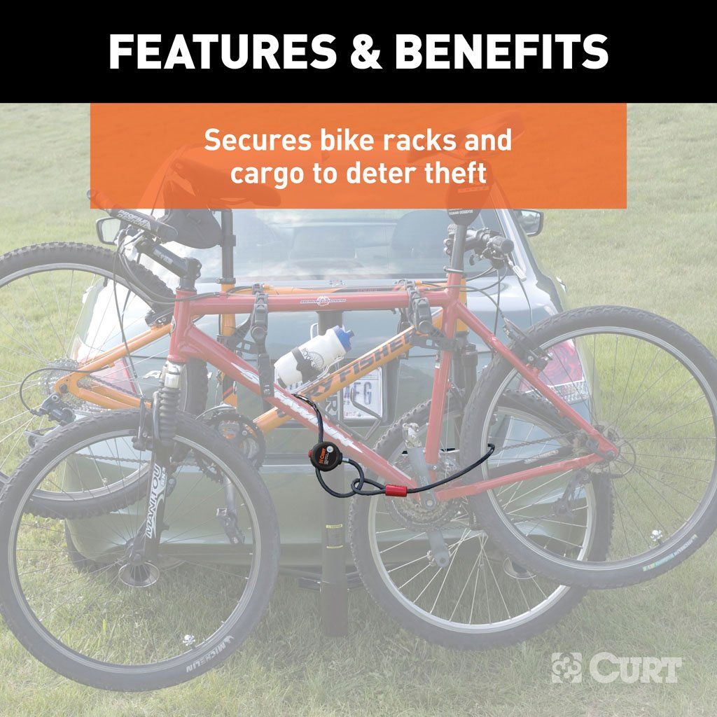 The multi-use security cable is a versatile lock that can be used to secure just about anything. It features a 6' x 3/8" cable, making it a reliable bike lock for a CURT hitch-mounted bike rack. This multi-use security cable is key-operated and includes two keys. For all of your trailer security needs, look to CURT for the lock to keep that boat, RV, toy hauler -- whatever it may be! -- safe and sound.