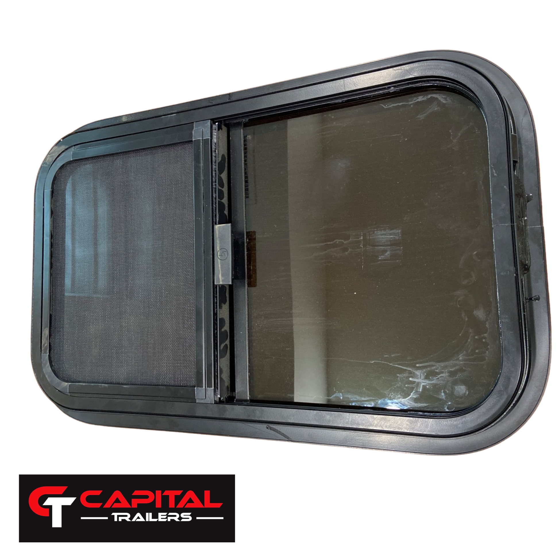 Description: 1 (One) 24"x15" horizontal half sliding window with screen.